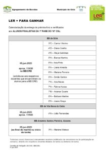 AEG e MG – Entrega de Prémios da 1ª Fase do Concurso Nacional de Leitura Direção1 Junho, 20233 Junho, 2023 Notícias ← CALENDARIZAÇÃO DAS PROVAS DE AFERIÇÃO A REALIZAR NO MÊS DE MAIO DE 2023 INFORMAÇÃO →
