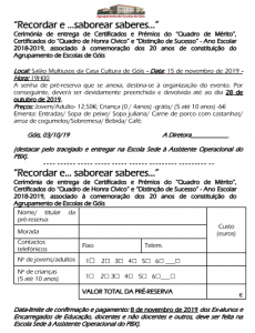 CERIMÓNIA DE ENTREGA DOS DIPLOMAS DE QUADRO DE MÉRITO, HONRA CÍVICO E DISTINÇÃO DE SUCESSO, ASSOCIADA À COMEMORAÇÃO DOS 20 ANOS DA CONSTITUIÇÃO DOS AGRUPAMENTO DE ESCOLAS DE GÓIS