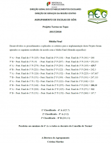 Turma No TOPO 2017/2018 Direção29 Agosto, 201829 Agosto, 2018 Notícias ← Reuniões de Abertura do Ano Letivo com os Pais/Encarregados de Educação por Escola – 2018/2019 Quadros de Mérito, Honra Cívico e de Distinção de Sucesso 2017/2018 →